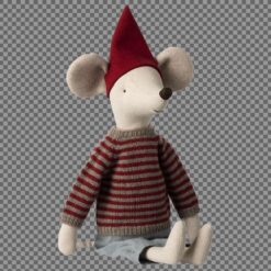 This mouse in size maxi wears his christmas hat and warm sweater – the ears are made in extra thick fabric to keep them warm.