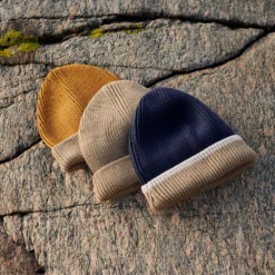 Warm, soft and easy to get on, the knitted Ezra Beanie is available in many colours.