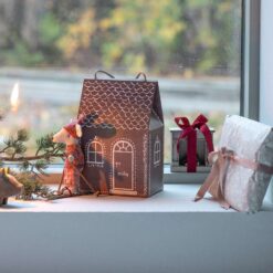 A paper bag shaped like a small gingerbread house. This is the perfect giftwrap for any small Maileg gift and will ensure the story will start before the gift is opened.