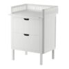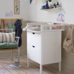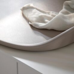 The Sebra PUSLE PUR changing mat has a soft and water-repellent surface that is easy to clean. The baby’s nest-like shape with a high edge will help prevent your baby from rolling down off the mat. The soft edges also ensure that the active child who moves around during nappy changes will not hit their head against the back wall or the edge of the changing unit.