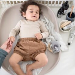 Make nappy changes a more enjoyable experience with the Sebra PUSLE PUR changing mat – seen here in the colour dew grey.