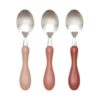 Practical gift box with three spoons in different colours, suitable for children who are learning to eat unaided. Seen here in a moonlight beige colour mix.