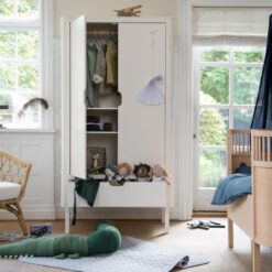 The Sebra Bed, Baby & Jr. is a baby and junior bed designed for indoor use. It is a pull-out bed that can be used as a baby cot and later as a junior bed. The bed is intended for max. 15 kg in the upper bed base position and 80 kg in the lower position. See all the measurements of the bed here.